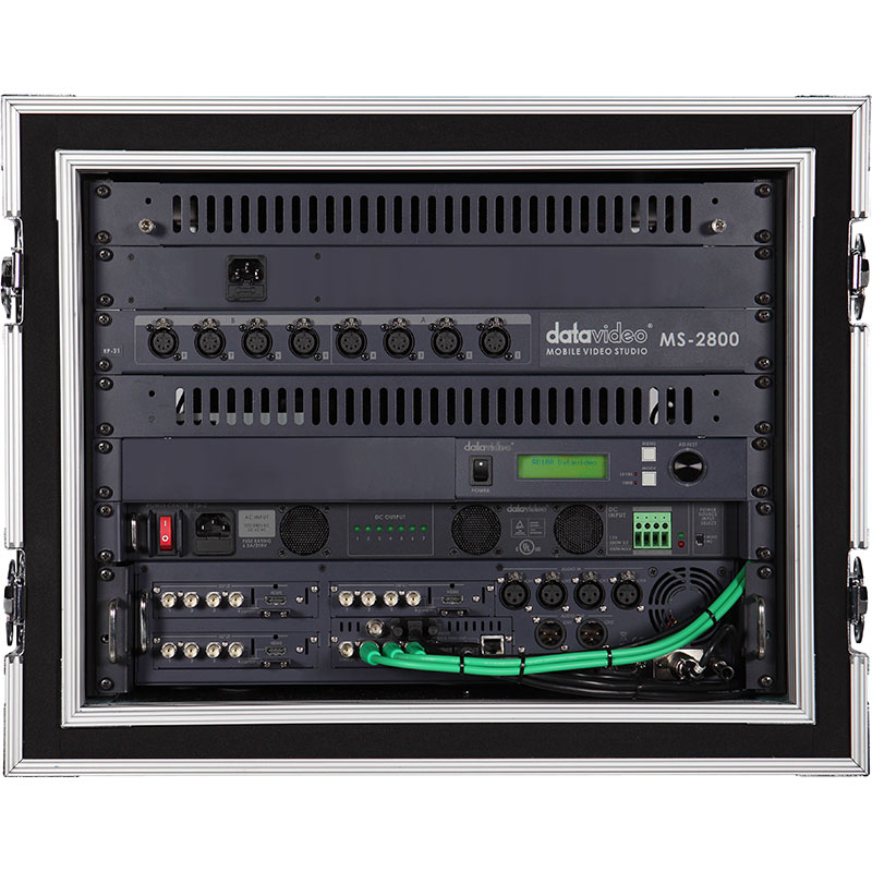 Datavideo OBV-2800-CCU is a PPU (Portable Production Unit), designed to fit into the back of a small van to provide complete mobile production facilities.It’s a transportable solution for broadcasters and professionals for both in-studio and on-location productions. Built around the latest HD/SD switcher, it supports up to 12 channels of HD/SD-SDI, HDMI or composite video signals. The system is integrated, compact and sturdy with a metal framework for great stability and protection yet provides room for future expansion.